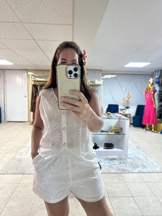 ✨ White Eyelet Elastic Waist -Shorts-Azure Boutique