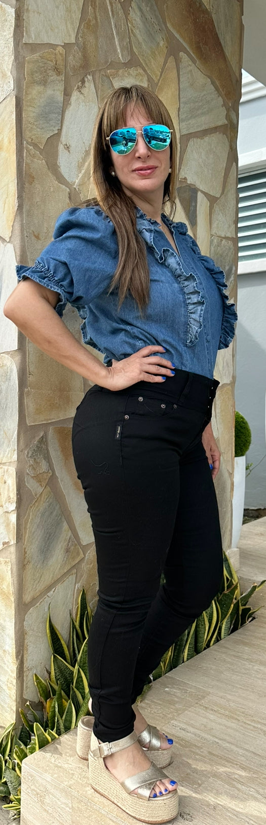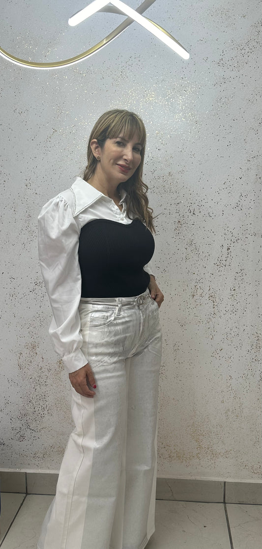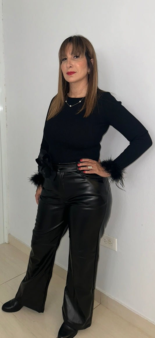 FABRIC FRONT SEAM FLARED DRESS PANT