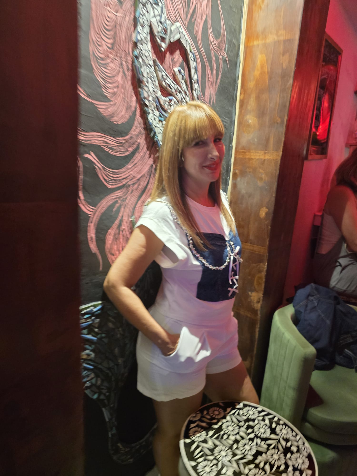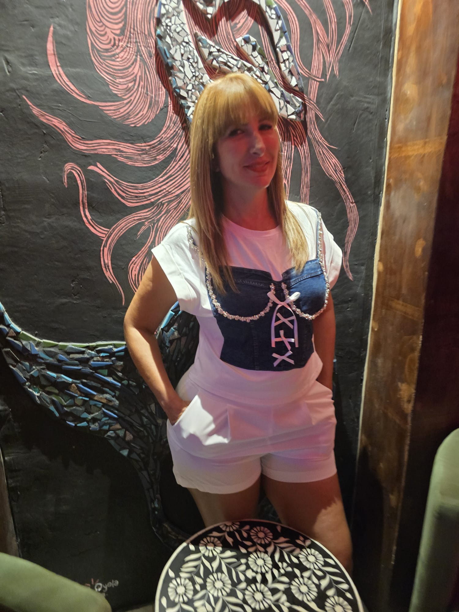 White & Denim cotton top with rhinestones